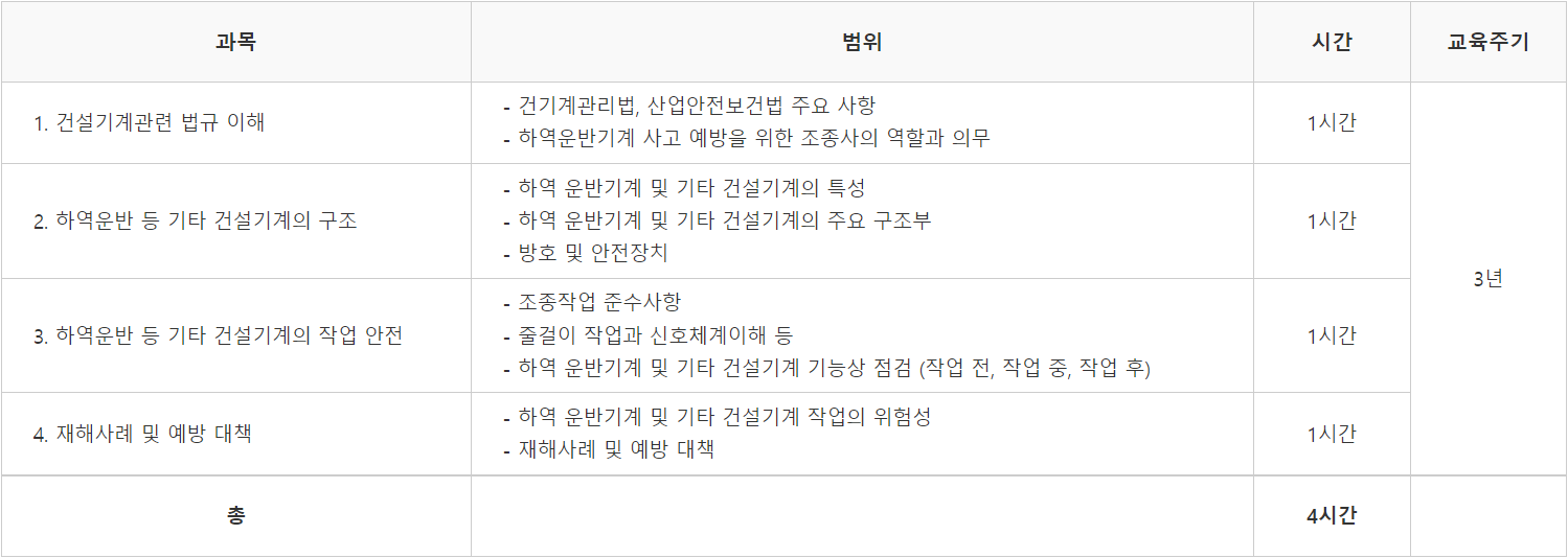 건설기계 안전 교육 교육 내용은 다음과 같습니다.