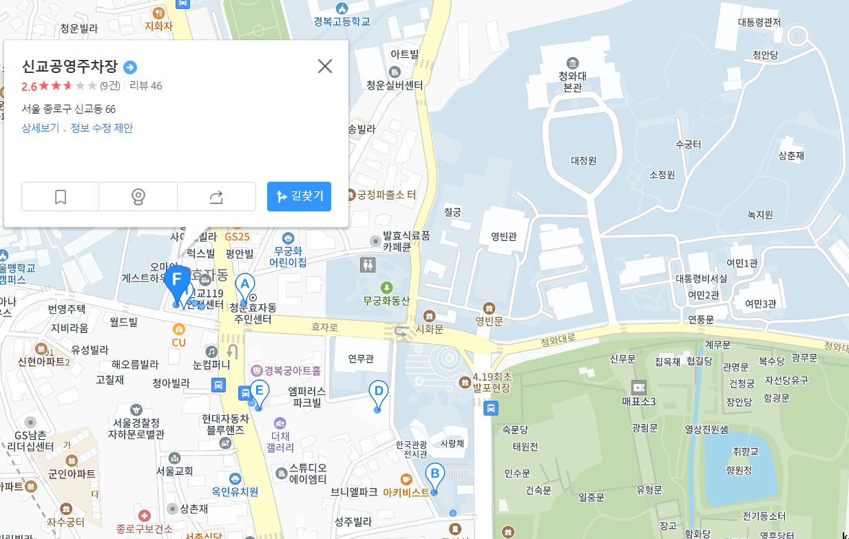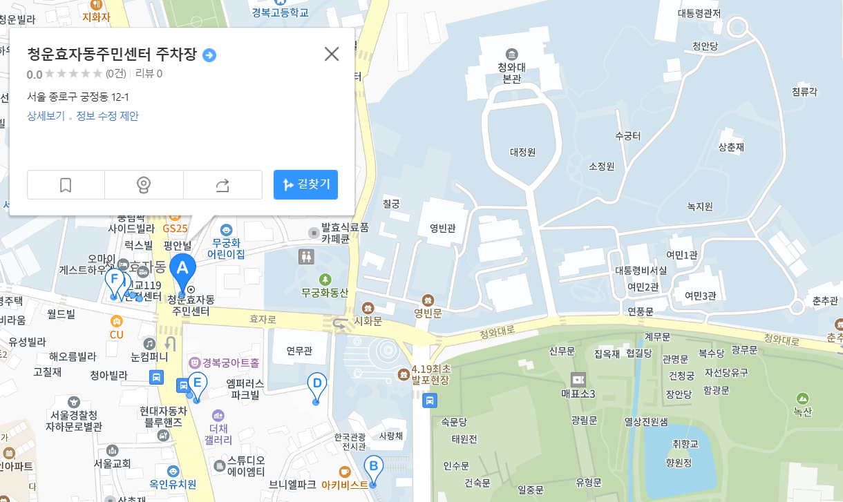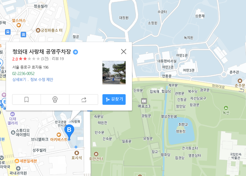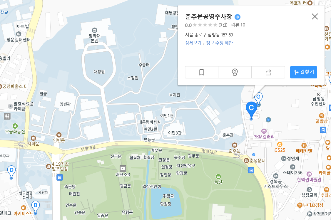 아래 주차장은 청와대를 기준으로 가까운 순서로 알려드리니 참고하시면 좋습니다.